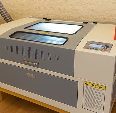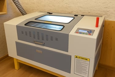 Au cœur de l'atelier se trouve une machine laser CO₂ au format 40 × 60 cm, un équipement polyvalent et précis qui permet de réaliser une grande variété de projets sur mesure. Grâce à sa puissance et à son excellente précision, cette machine est idéale pour la découpe, la gravure fine et la personnalisation sur de nombreux matériaux.