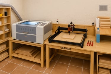 Situé au cœur d’un espace entièrement pensé pour la précision et la créativité, l'atelier réunit deux technologies complémentaires : la gravure / découpe laser et l’usinage CNC sur bois.